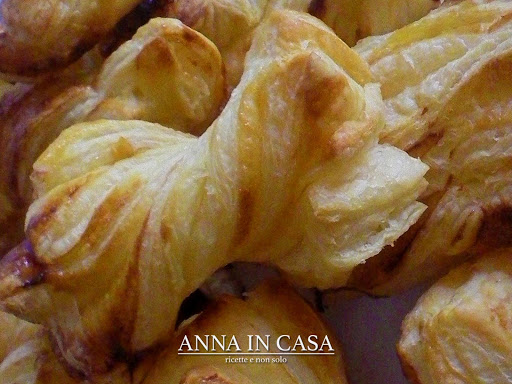 A questo punto tagliare a strisce di circa 3 cm circa di larghezza e di 4-5 cm di lunghezza, la doppia sfoglia. Formare una sorta di farfalla e spennellare con l’uovo. Spolverizzare nuovamente con lo zucchero e infornare a 170° per 10-15 minuti. Sono pronte quando la sfoglia è gonfia e dorata.