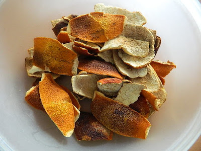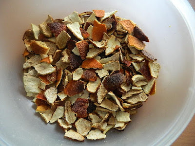In questo modo in poco tempo le bucce saranno completamente secche, spezzettiamole grossolanamente