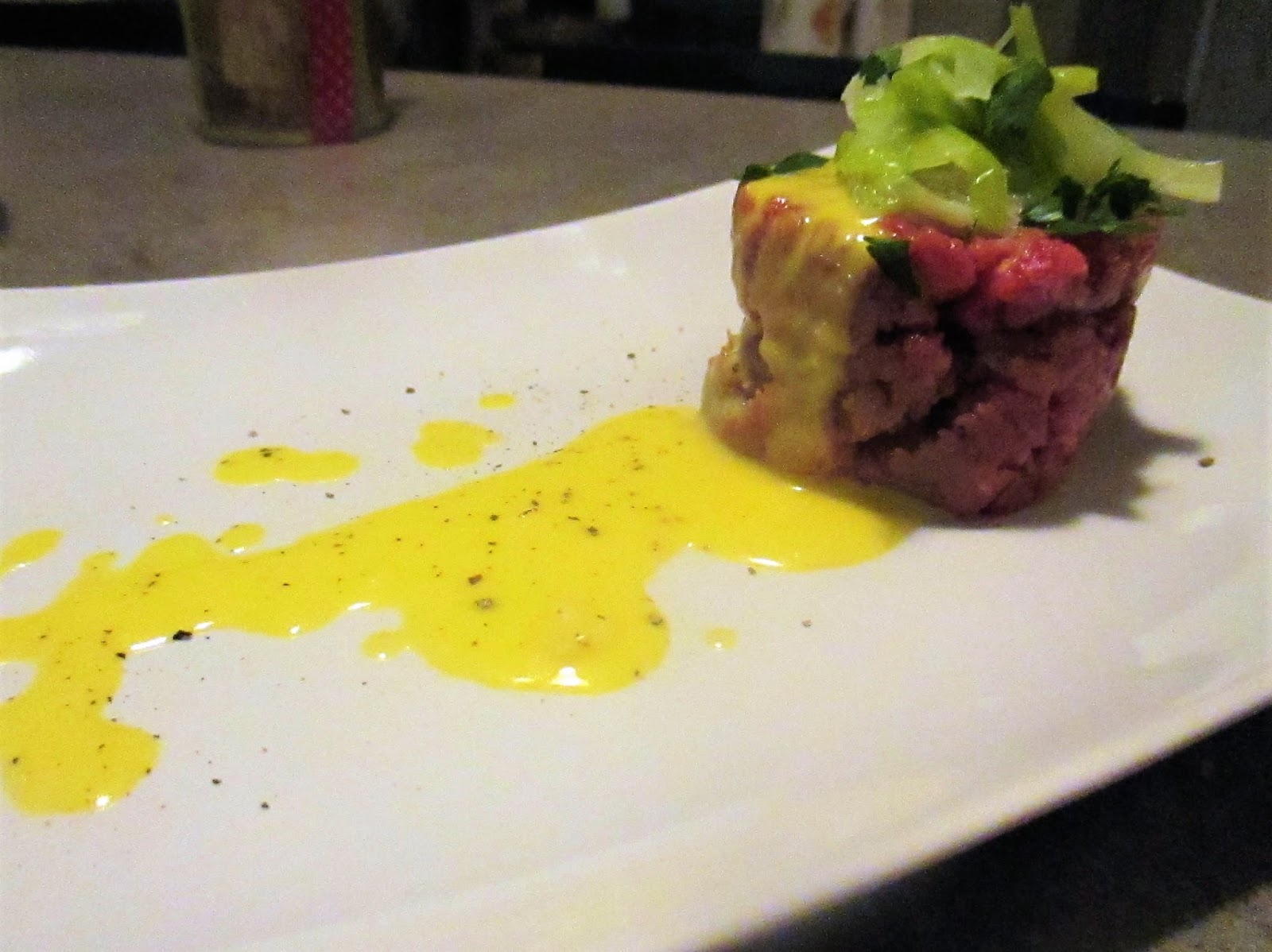 In a bowl, put in the meat and then season with olive oil, lime juice and capers washed by salt and finely chopped. Stir well then put in the fridge to rest for about 1 hour.