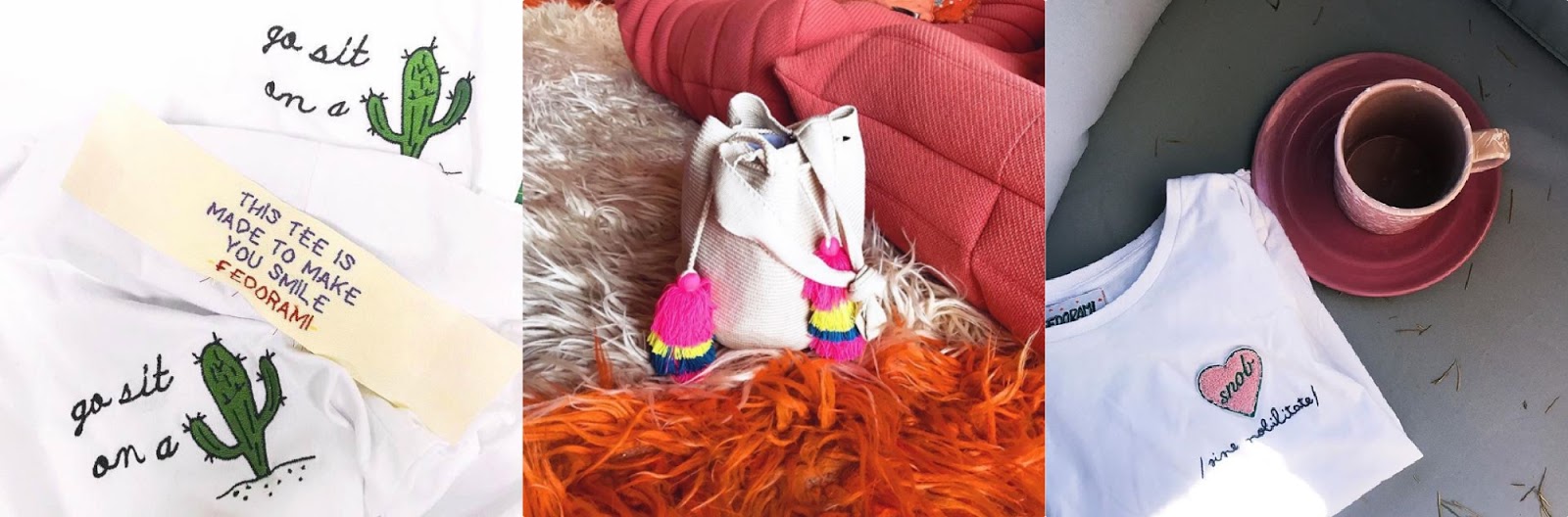 Un approccio gioioso alla vita tipico di chi ha la fortuna di vivere nella città simbolo della moda. L’anima creativa di FedoraMi è Valentina Nuzzi, nata e cresciuta nel cuore di Milano, ragazza bionda dall’animo vintage, innamorata da sempre delle borse, del rosa, dello shopping e dei cactus. Ma soprattutto del caffè. Pur mantenendo un forte legame con l’Italia, la vita e il destino la portano a viaggiare tanto e ad amare alla follia il Giappone, anche se Roma e Los Angeles rimangono i suoi posti preferiti nel mondo. Temperamento tipico di chi è del segno dell’Acquario, rifiuta il conformismo e la massa e tifa per l’eleganza senza tempo, l’originalità e la bellezza. Un’attitudine per la moda sentita e seguita dopo la laurea in economia, quando a star dietro ad una scrivania proprio non ci si vedeva. Il suo forte sono proprio i viaggi e le tee shirt, in cotone biologico con scritte ricamate a mano. “Nothing to wear” e “I love my bed” cucite su bianche t-shirt e su felpe grigio melange dal taglio corto per sentirsi subito più allegre. “Go sit on a cactus”, “Peace love and avocado” e “fries and mayo”. Good words con un pizzico di humor in the mood of happiness, anche personalizzabili.