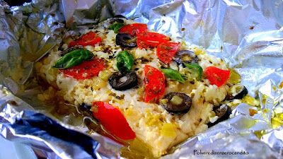 Preparare un cartoccio con due pezzi di alluminio sovrapposti e posizionarci la fetta di feta.
