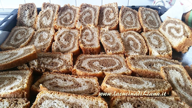 Le classiche fette biscottate all’orzo, si preparano con la pasta madre, rinfrescata o esubero di un paio di giorni al massimo, quindi si impasta una parte dell’impasto con l’orzo e poi si arrotolano i 2 impasti. Si infornano, poi si affettano e si tostano le fette. Pronte per essere gustate con un velo di marmellata o di nutella. Se ben tostate e lasciate asciugare perfettamente, si conservano croccanti a lungo ben chiuse in scatole di latta. La ricetta è di profumo di cannella