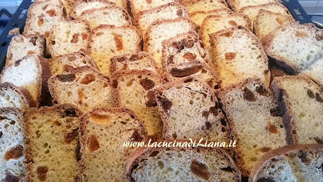 Con la tostatura a bassa temperatura e con il forno aperto a spiffero, si ottengono delle fette belle fragranti, non troppo dure. Se disponete di cella di lievitazione o comunque la temperatura ambiente è abbastanza calda, si possono produrre in giornata, altrimenti si può fare la seconda lievitazione nel frigorifero per tutta la notte, infornandole il giorno dopo.