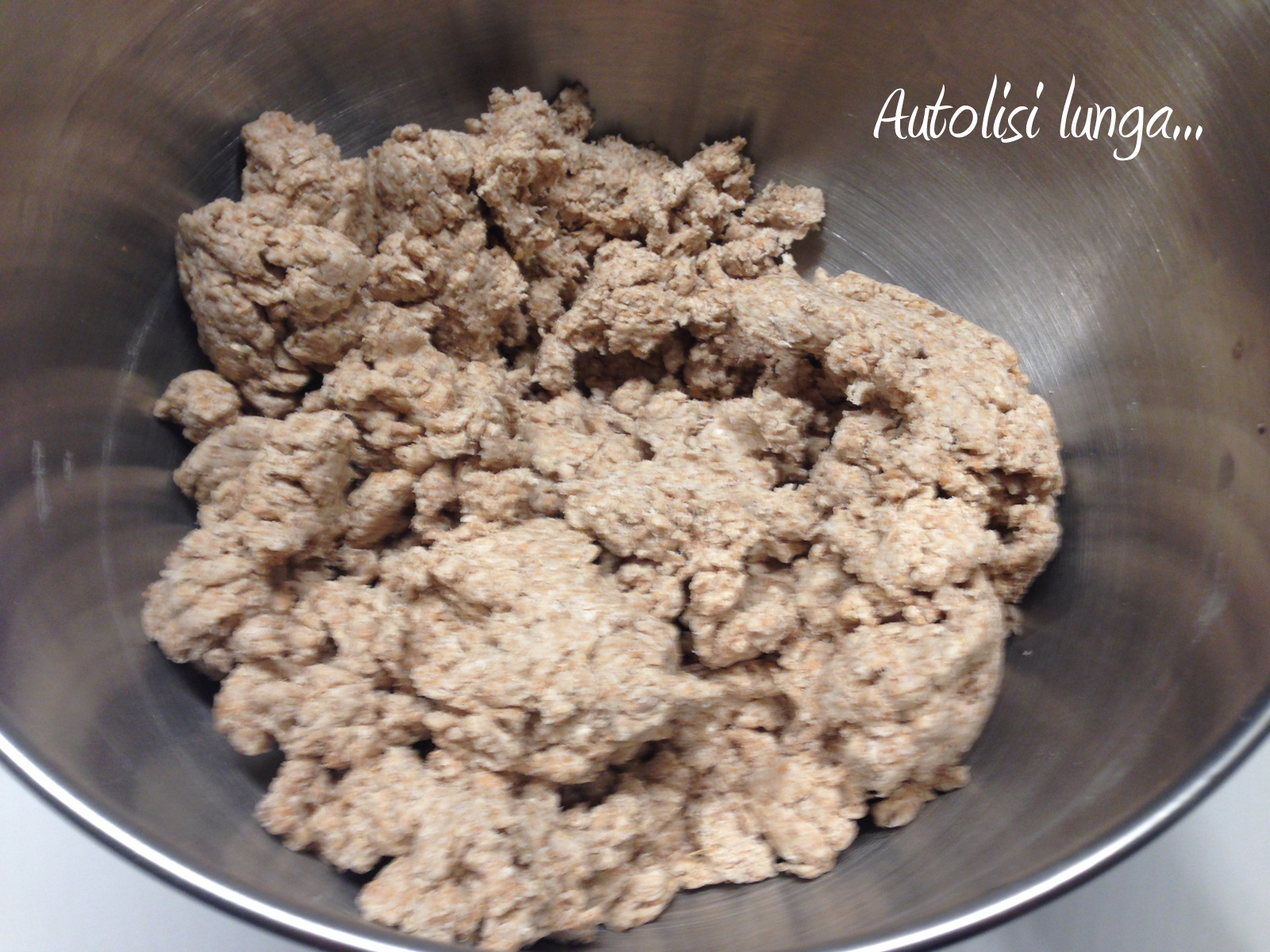 Come vi accennavo, per aver utilizzato solo integrale, dovete avere qualche accortezza. La prima: è necessario fare autolisi molto lunga (12-24). Organizzatevi anche con i vostri orari, importante è che utilizziate un pizzico di sale (per rallentare la fermentazione che parte dopo circa 6 ore) e che la facciate riposare a temperature basse (12-14°)