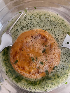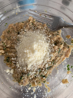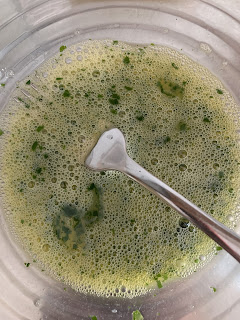 Aggiungere all’uovo sbattuto il prezzemolo e mescolare.