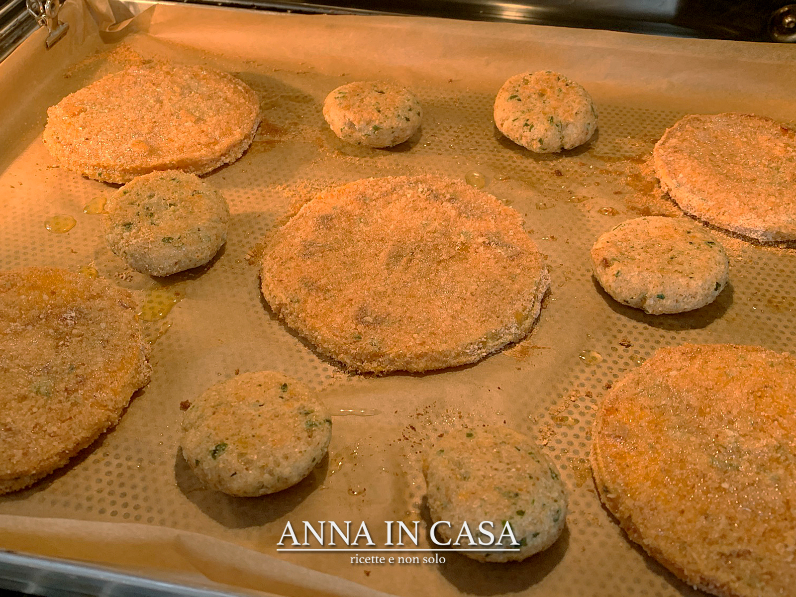 Infornare a caldo a 190° C fino a doratura da entrambe le parti sia delle polpette che delle fettine di zucca.