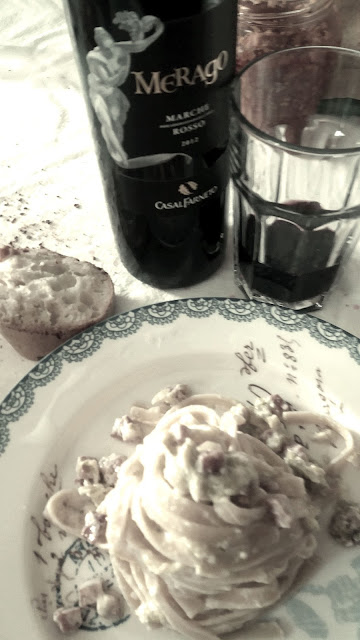 Una pasta ottima , accompagnata da un super vino .il MERAGO..CASAL FARNETO
