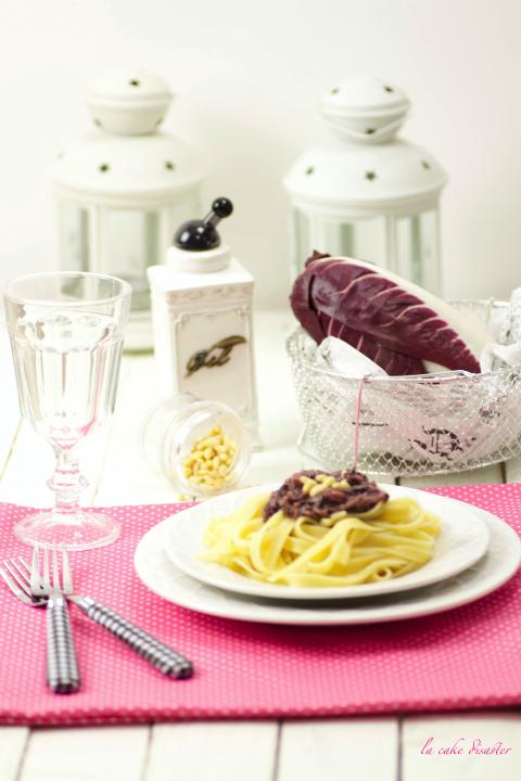 Io adoro la pasta, non riesco proprio a farne a meno…anche se sono a dieta, ogni tanto qualche peccato di gola ci vuole!!!! Non so se avete provato le fettucelle della De Cecco, sono ottime, tengono bene la cottura e sono saporitissime e con questo pesto di radicchio tengono anche il condimento!!!!