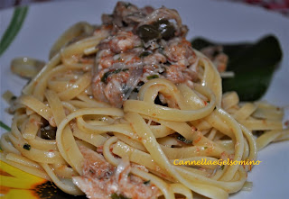 Quando è pronto, sistemo nel piatto le fettuccine sopra una foglia di limone, ci metto sopra qualche pezzo di torpedine: tutto il profumo del pesce fresco in un piatto da leccarsi i baffi!