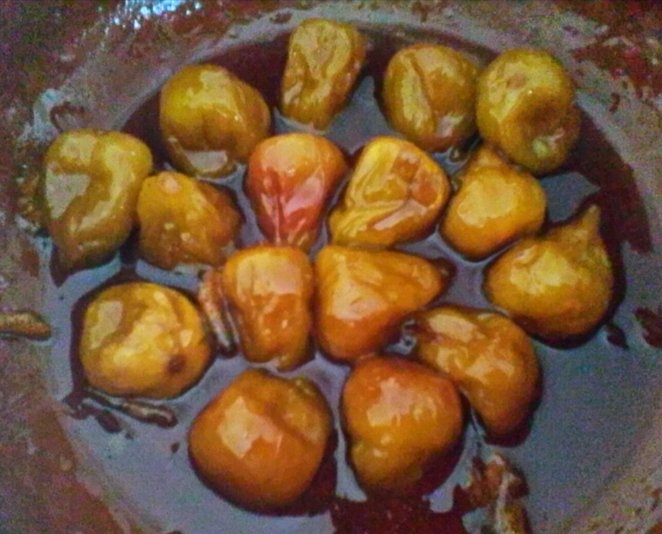 Sistemateli in una padella, uno accanto all’altro e ricopriteli con il vino cotto e lo zucchero. Inserite le scorzette di limone, solo la parte gialla.