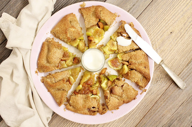 Impastare assieme tutti gli ingredienti per la frolla e lasciarla riposare una mezz’oretta coperta con pellicola per alimenti. Su un foglio di carta forno schiacciare con le mani la frolla fino a creare una sorta di piadina. Ricoprire con un secondo foglio di carta forno e con il matterello stendere la pasta fino ad ottenere uno spessore di 4-5 mm. Il bello delle galette è che sono rustiche e non importa che i bordi siano regolari.