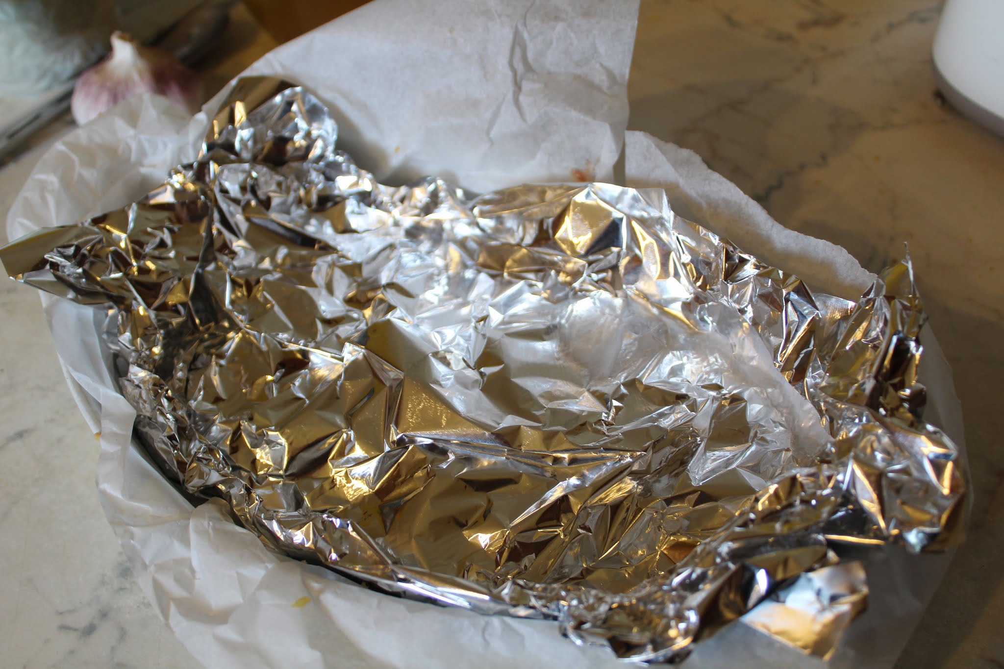 irrorare con un filo d’olio e coprire con un foglio di carta alluminio.
