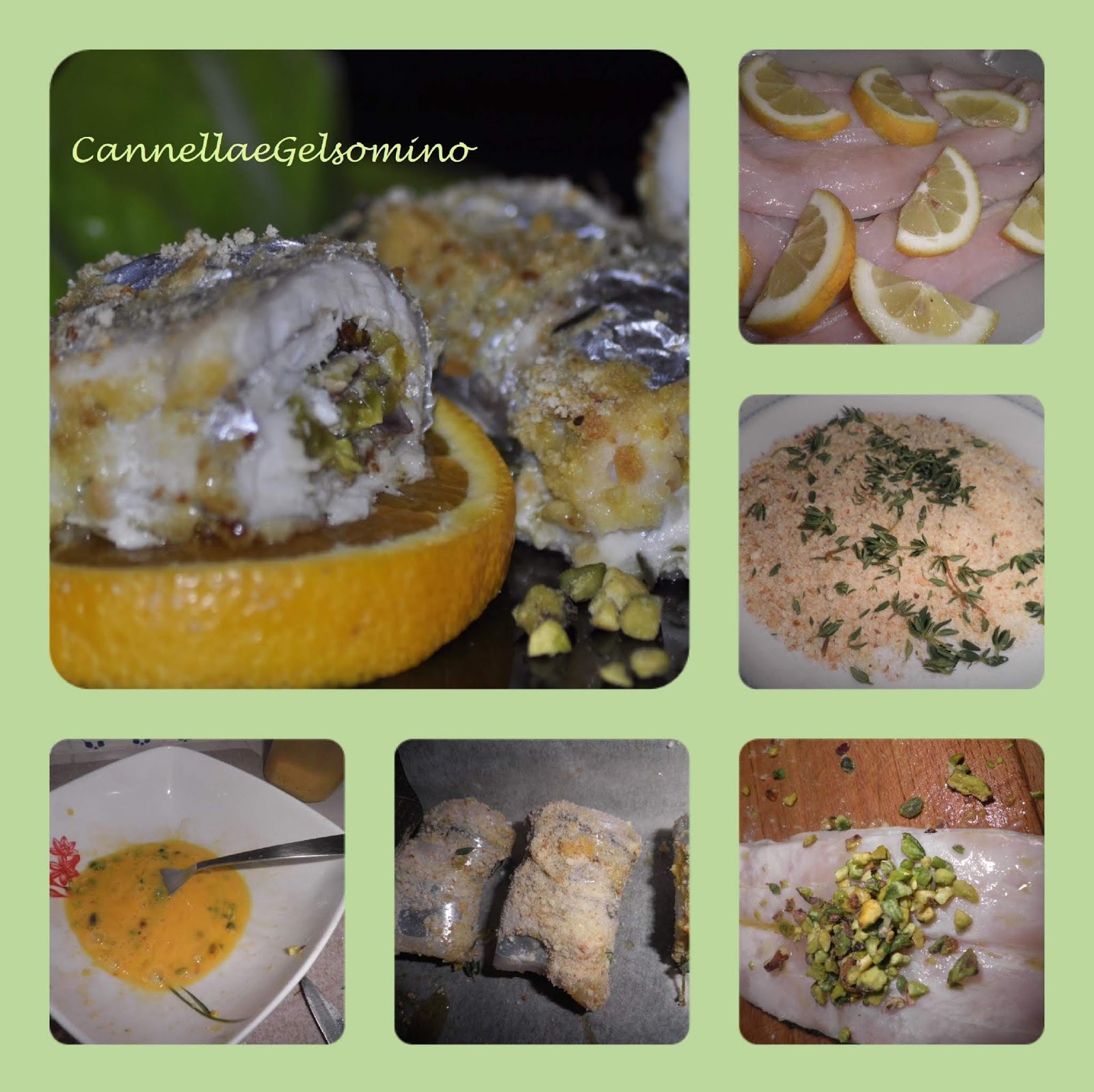 Prendete una porzione di pesce e metteteci al centro un cucchiaino di granella di pistacchio di Bronte. Arrotolate e se volete fermate con uno stecchino, ma non è necessario.
