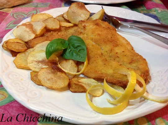 Infarinare leggermente i filetti, scuoterli per eliminare la farina in eccesso, passarli nell’ uovo e quindi in una panure composta da pangrattato, parmigiano, scorza di limone e farina.