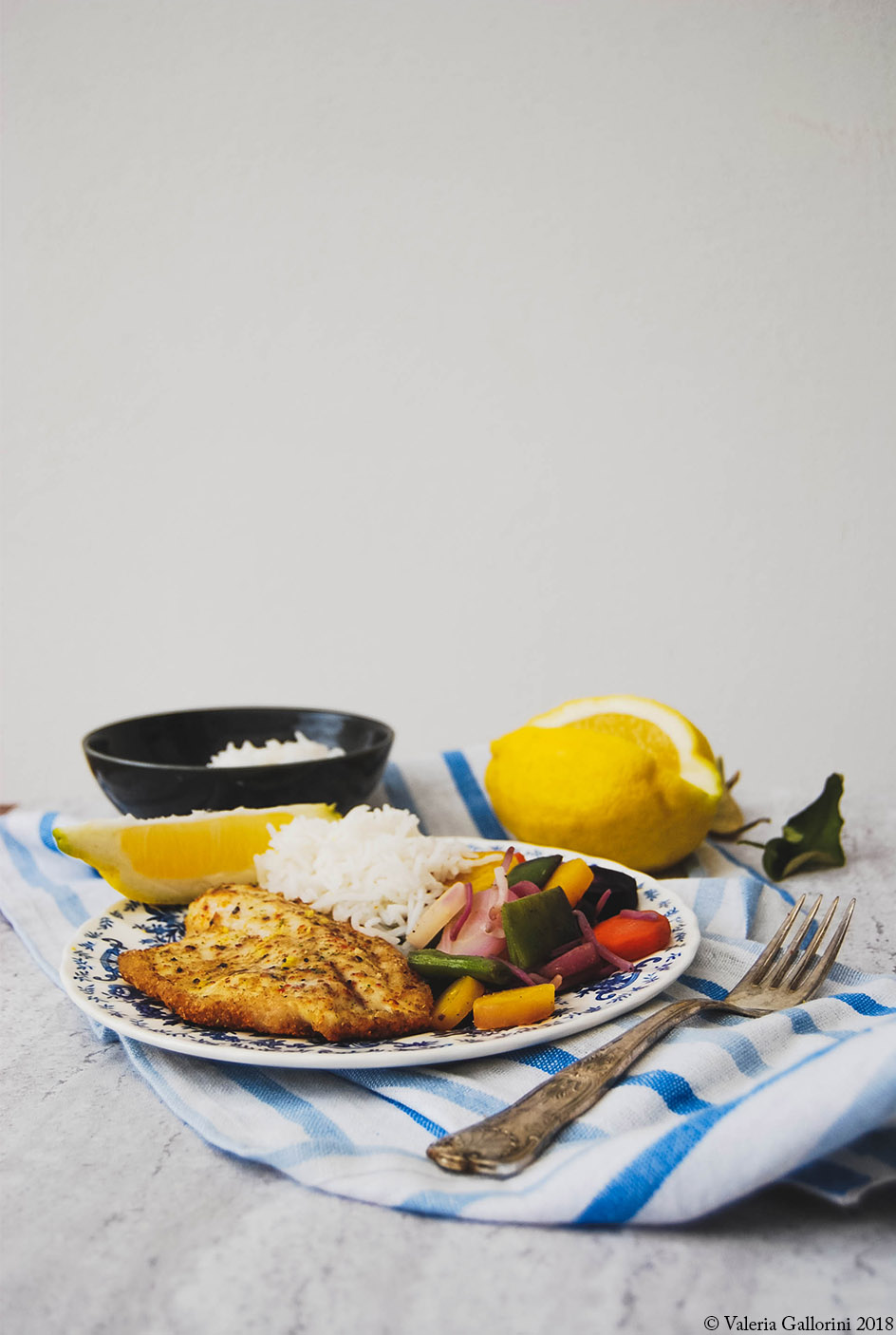 Delicati filetti di tilapia avvolti sul lato inferiore da una croccante panatura e insaporiti sulla superficie con sale, pepe nero e pepe bianco: ecco spiegato il doppio piacere!