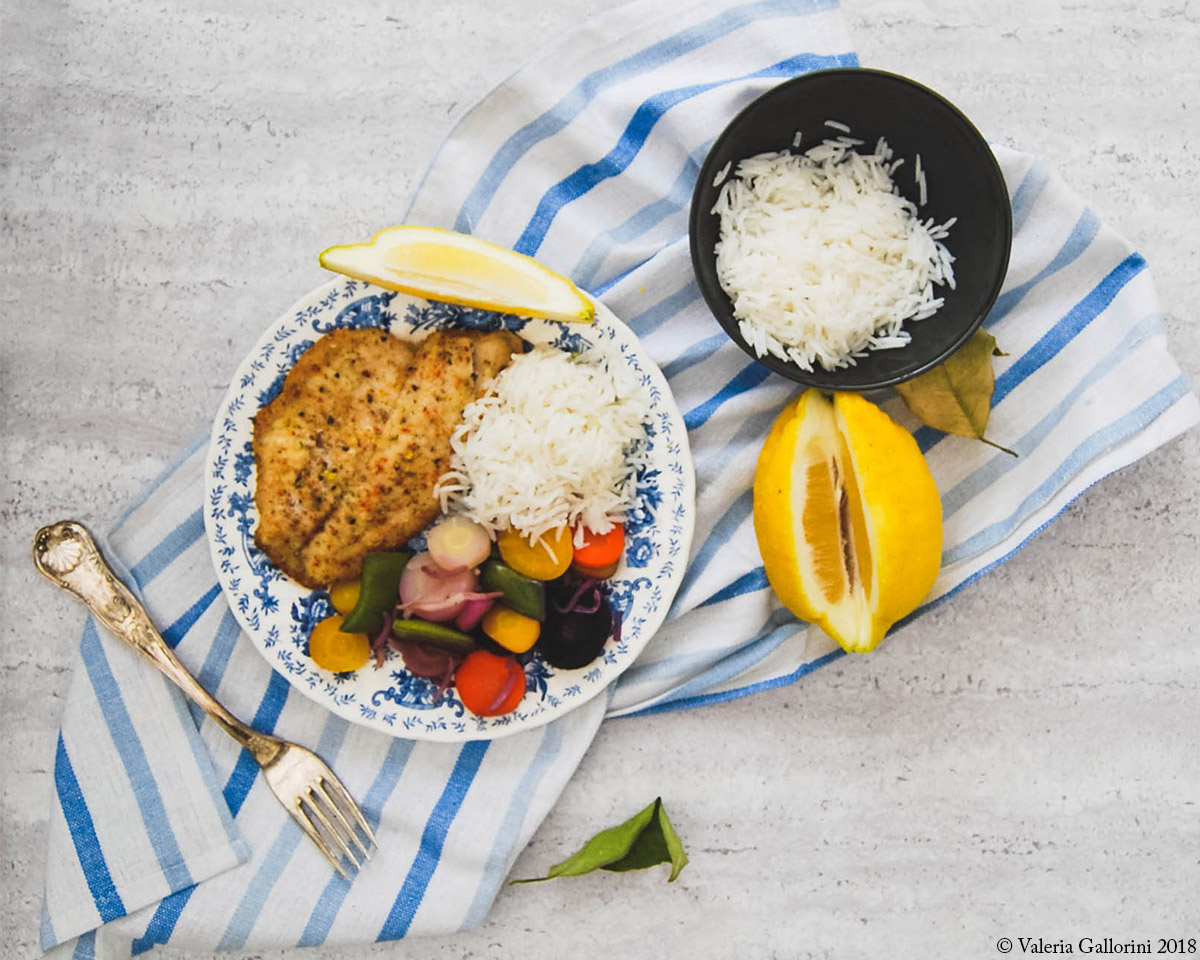 Come contorno ho abbinato il WokMix Arcobaleno, un colorato mix di taccole, germogli di fagiolo, carote arancioni, bianche e viola. Sono verdure al naturale perfette per accompagnare tutti i secondi delicati: di pesce o di pollo. Per completare la ricetta e creare un gustosissimo e salutare piatto unico ho arricchito il piatto con una porzione di riso basmati.