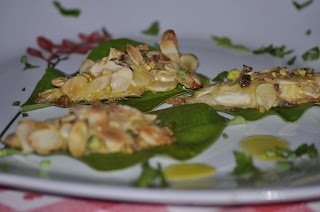 Sistemateli su una teglia rivestita di carta forno e passateli sotto il grill per 5/7 minuti giusto il tempo che le mandorle di dorino. Versate un filo di olio extra vergine d’oliva. Servite caldissimi adagiando ogni filetto su foglie di limone (naturalmente non trattate); tutti gli aromi delle foglie doneranno ai filetti un gusto che non riesco proprio a spiegarvi: bisogna provare!