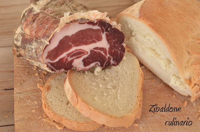 Per l’Emilia – Romagna ho pensato di presentare un salume poco conosciuto, purtroppo, la coppa piacentina DOP, un salume che viene ricavato da un pezzo fresco, un muscolo cervicale del suino, che dopo salatura a secco e massaggiatura manuale o in zangola viene raffreddata per 7 gg in cella frigorifera.