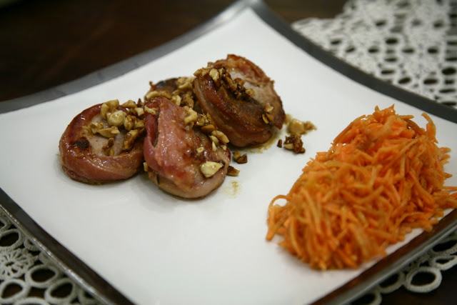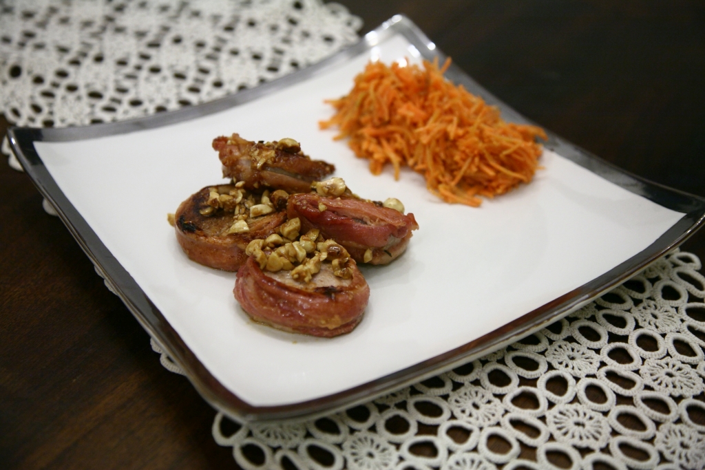 Servire i medaglioni con le nocciole accompagnati da un’insalatina di carote tagliate a julienne.