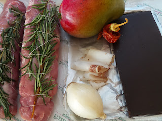 Questa ricetta nasce dalla partecipazione ad un concorso per blogger ai quali veniva chiesto di creare un piatto utilizzando, obbligatoriamente, degli ingredienti che, nella fattispecie, erano: Maiale, Lardo di Colonnata, Cioccolato fondente, Mango e Peperoncino. Partendo da questa base ecco che prende corpo, nella mia mente, questo abbinamento che ho voluto testare sulla mia cavia preferita il giorno di San Valentino. Abbinamenti audaci, è vero, sicuramente non di uso comune ma vi assicuro che potete tranquillamente cimentarvi nella preparazione e nella degustazione di questo piatto che unisce il dolce ed il salato in un’esplosione di gusto.