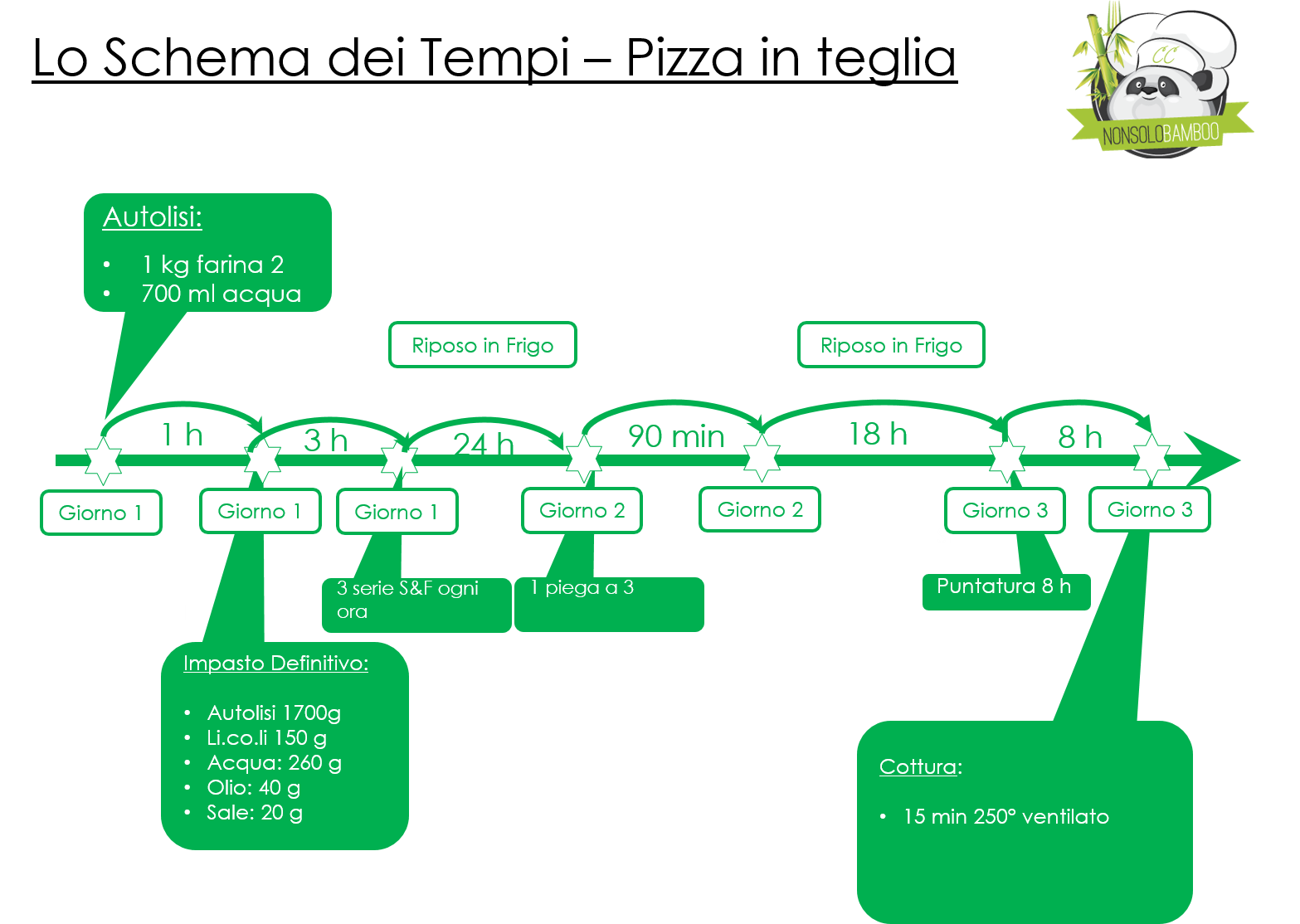 per ottenere una buona pizza con licoli dovrete dotarvi di pazienza. Il processo sarà spalmato su 3 g, in un arco di 48 h. ecco il mio schema dei tempi.