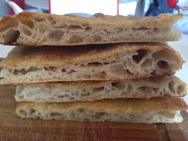 E’ proprio vero…non bisogna mollare mai! Quando ci si pone un obiettivo, qualsiasi esso sia, bisogna perseverare, studiare, provare, capire gli errori e non farsi influenzare dall’esterno ma andare avanti a testa bassa; così facendo 9 volte su 10 si centra l’obiettivo. Mutuando teorie economiche gestionali, il mio suggerimento è fare sempre analisi delle varianti (cambiare un solo elemento alla volta e valutare effetto sul prodotto finale) e soprattutto è vero che grandi successi sono figli di tanti piccoli successi…e qualche errore! Tutto questa enfasi per parlare e condividere con voi di uno dei miei obiettivi principali da quando ho iniziato a mettere le mani in pasta: la pizza in teglia alla romana ad alta idratazione. Non so se ne siete a conoscenza, ma il forum “La confraternita della pizza” ha sviluppato in collaborazione con molti dei riferimenti in tema di panificazione capitolina – Bonci su tutti – un vero e proprio disciplinare che fissa i paletti in termini di ingredienti e di procedure. In questo documento c’è la versione con ldb, io, vedendo anche diversi blog di amici, tra cui questo di Lucia, ho provato la versione con lievito madre e sono rimasto decisamente soddisfatto. Ecco il mio risultato