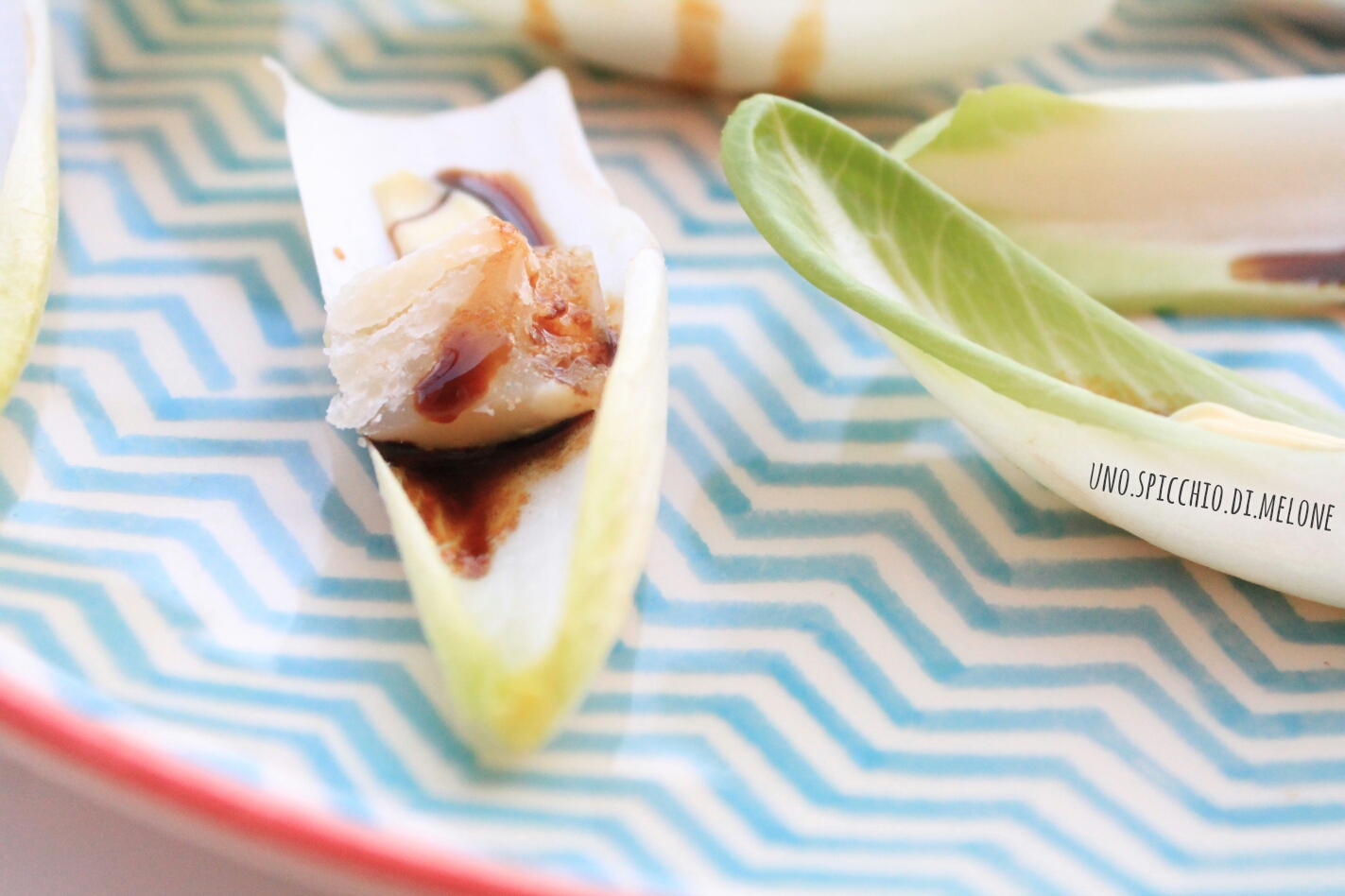 Ora aggiungete, dentro ogni foglia, un pezzettino di parmigiano, un filo di maionese ed un filo di aceto balsamico!