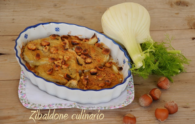 Prendere una teglia da forno mettere i finocchi cotti con 1 cucchiaio di acqua, cospargere con pane.