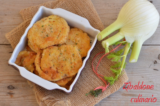 Scaldare l’olio in una grande padella, deve essere abbondante in modo che le fette di finocchio galleggino, e friggere per un paio di minuti per lato, così da rendere la crosticina leggermente ambrata.