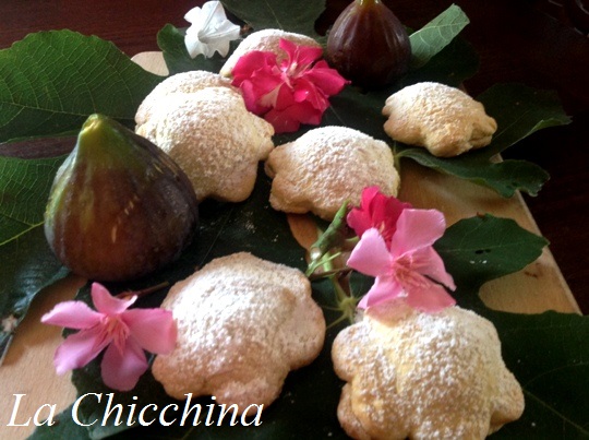 Così, cantando scende la pioggia e la pancia non c’è più, ho fatto una buona raccolta che ho pensato di onorare preparando i MIEI FIOR DI FICHI: morbidi biscotti di frolla ripieni di fichi cotti brevemente con zucchero e cannella…una deliza!!