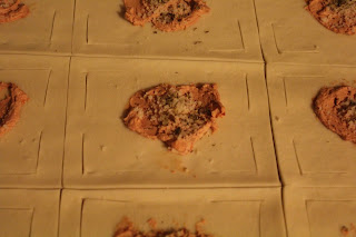 Al centro di ogni quadrato posizionare un po’ di crema al formaggio e pomodoro, cospargere con il formaggio grana e infine con l’origano.