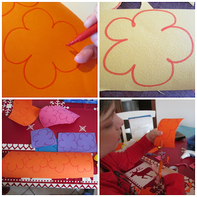 - prendete dei cartoncini colorati e disegnate con un pennarello a punta grossa, a mano libera, senza essere neppure troppo precisi, dei fiorelloni