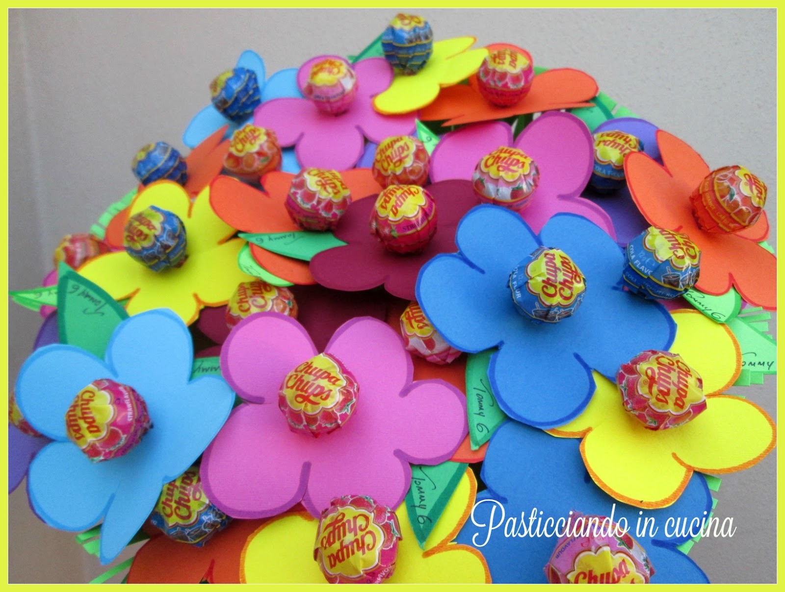 - personalizzate infine la vostra torta di lecca lecca scrivendo con un pennarello o con delle letterine adesive il nome e gli anni del vostro bimbo…
