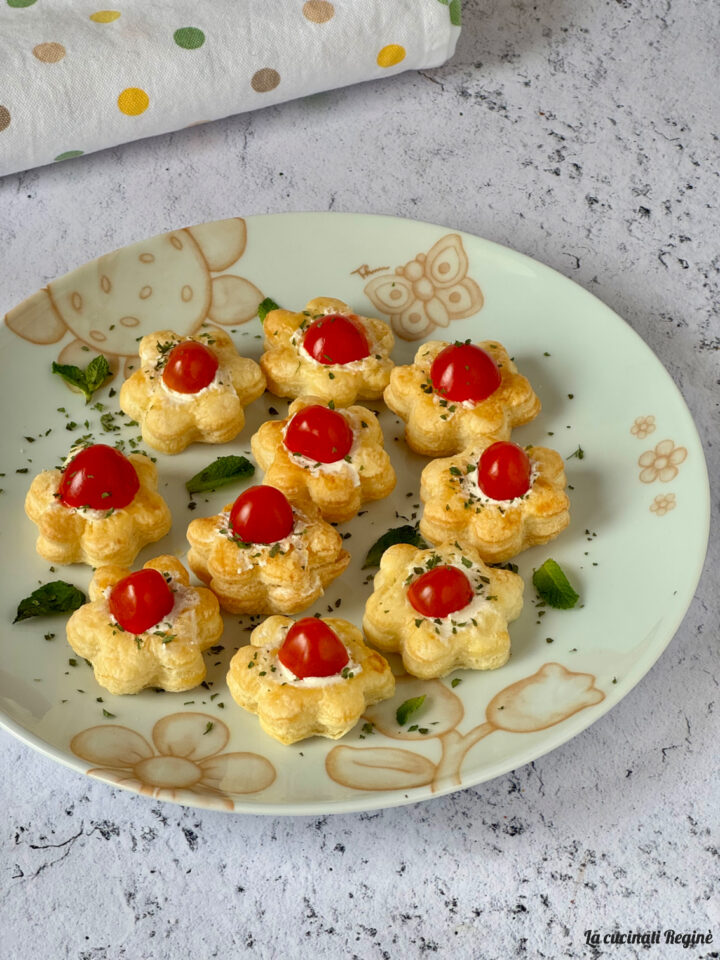 I fiori di pasta sfoglia con caprino sono un aperitivo dall’aspetto decisamente primaverile, capace di conquistare prima lo sguardo e poi il palato. Belli e saporiti, portano in tavola colore e leggerezza, diventando subito protagonisti di buffet.