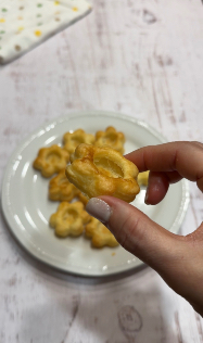 Disponi i fiori nel cestello della friggitrice ad aria e cuoci a 180°C per circa 8–10 minuti, finché risulteranno ben dorati e fragranti. Una volta pronti, lasciali raffreddare completamente prima di procedere con la farcitura.