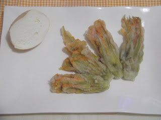 Preparare i fiori di zucca mettendo un alice sottolio e alcuni tocchetti di mozzarella e velocemente immergeteli nella pastella e friggeteli fino a che diventano belli dorati.