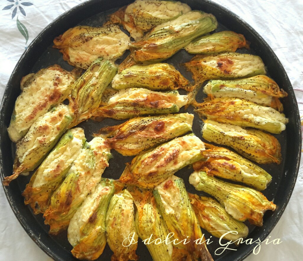 Ma passiamo alla ricetta di oggi: fiori di zucca ripieni.