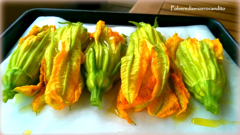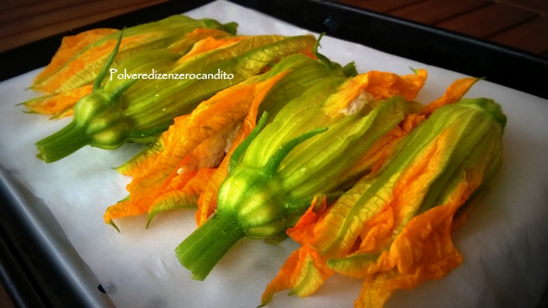 Preparare con cura i fiori da riempire, togliendo il pistillo interno, lavare delicatamente immergendo in acqua fredda per 2 secondi, scrollare via l’acqua in eccesso e mettere ad asciugare in un pezzo di carta assorbente.
