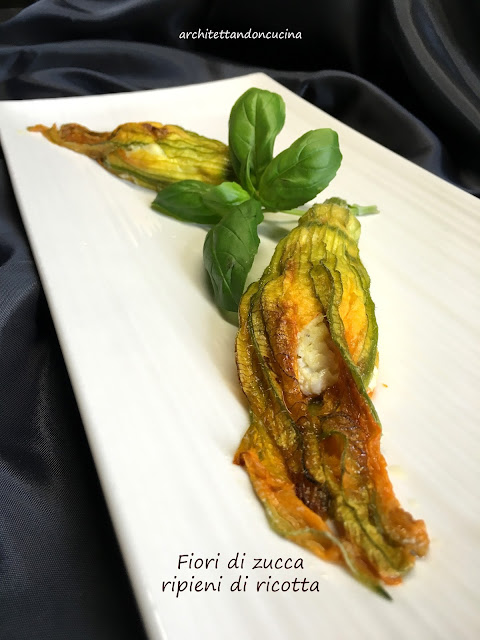 A volte mi rendo conto che questo blog, che era nato per raccogliere le mie ricette e condividerle, spesso viva di vita propria. Infatti, con l’andare del tempo, l’MTC ed il Calendario del cibo Italiano, indetto dall’Associazione Italiana Food Blogger, determinano molto i piatti che pubblico, a discapito delle mie ricette “classiche”. Non che questo sia negativo, basta guardare i progressi che ho fatto in questi anni, per rendersene conto. Però, poi succede di cercare una ricetta, come l’altro giorno per la Scuola di Cucina e non trovarla, pur essendo consapevole di averla fatta numerose volte, di averla fotografata ecc. ma sul blog non c’è! Sono la prima a stupirmi, ma questo capita spesso. Sono le mie ricette, pertanto sembra che ci sia sempre tempo per pubblicarle e così passano gli anni. No, non esagero! Gli anni! Infatti questo piatto lo faccio da tantissimo tempo: piace molto ai miei figli da quando erano piccoli eppure sul blog non c’è. Quindi, preso atto della mancanza, la stagione è giusta, al mercato ne ho trovati di bellissimi, gli altri ingredienti sono in frigo, quindi all’opera! Oggi fiori di zucca ripieni di ricotta.