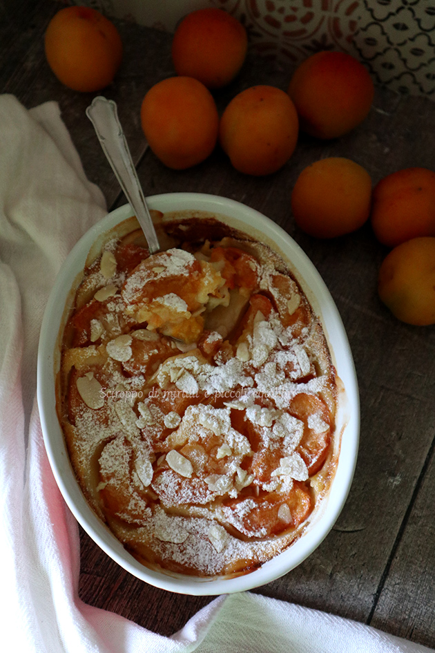 Questa volta ho utilizzato le albicocche aromatizzate all’esenza di vaniglia e lamelle di mandorle.