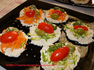Farcire a piacere. Io ne ho farcite alcune con zucchine e carote tagliate a fiammifero e altre con peperone tagliato finemente. Ho aggiunto anche pesto, pomodorini, olive e semini di sesamo.