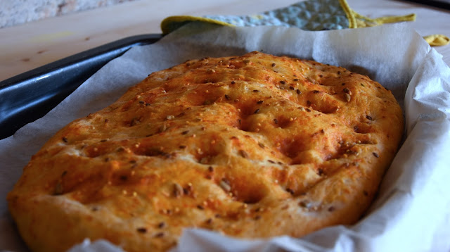 Facciamo una lievitazione diretta e senza riposo refrigerato e sforniamo una focaccia morbida e saporita. Usiamo anche una miscela di Petraviva che adoro e che uso spesso: il brick Bonsemì.