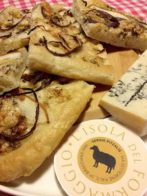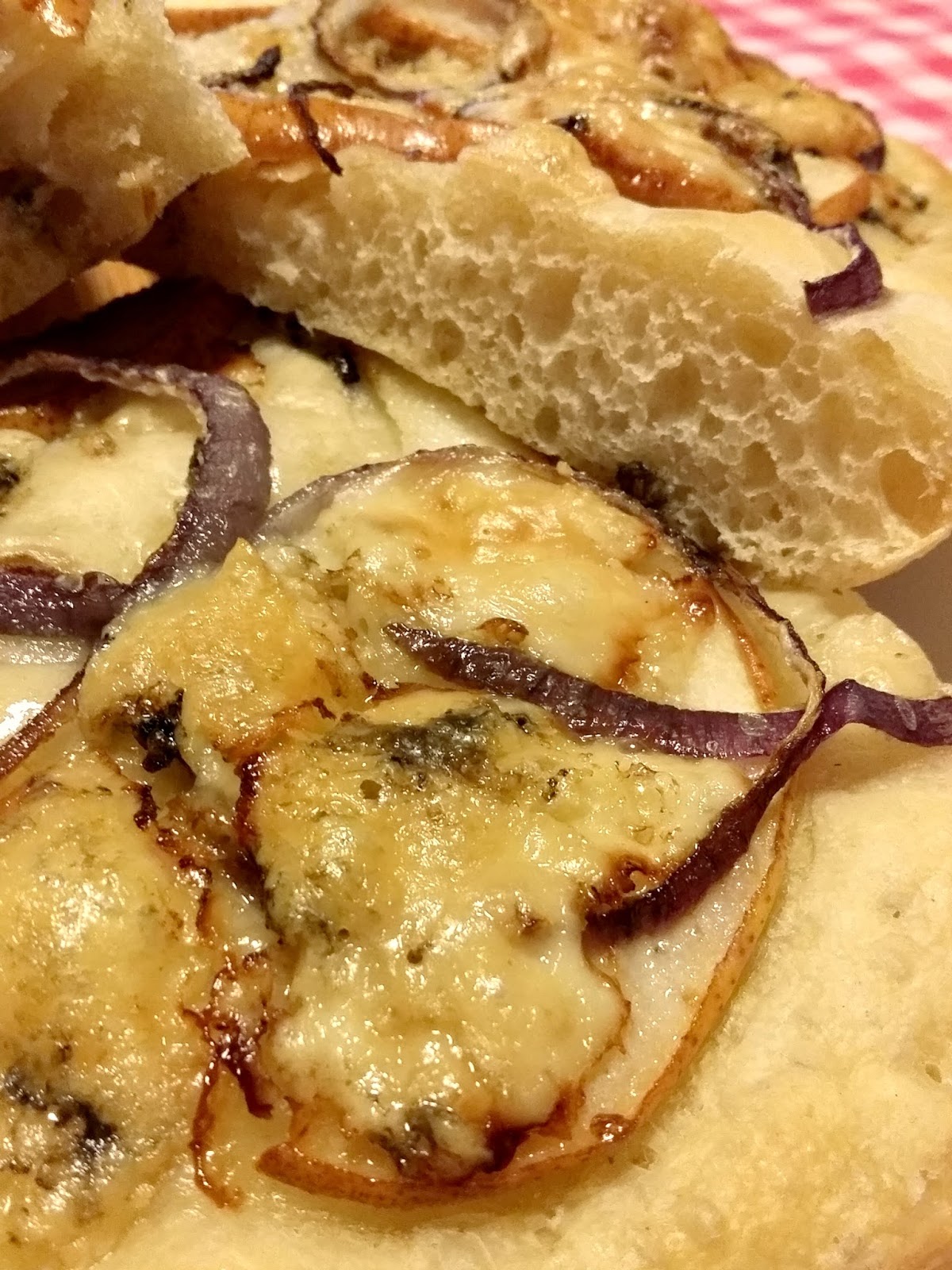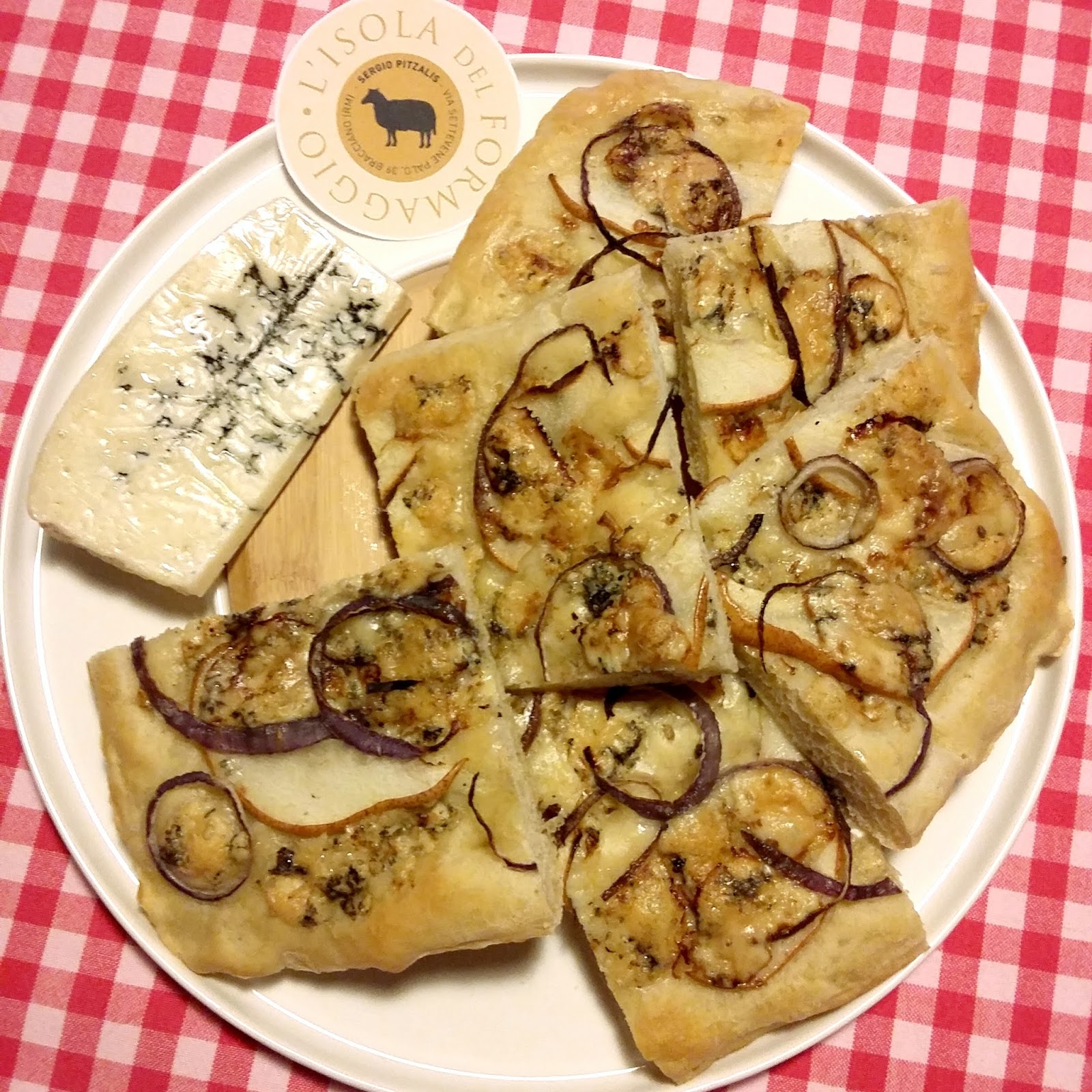 La mia focaccia, visto che sono poco (!!!) golosa, l’ho voluta farcire con l’ottimo pecorino erborinato di Sergio Pitzalis distribuito da Cibo Et Vino Shop, mio punto di riferimento per gli acquisti di cibi e delizie on line. Ho aggiunto le pere e poca cipolla rossa, nel più classico degli abbinamenti, così che ad ogni morso corrisponda un sapore leggermente diverso. Inutile dirlo: è stata divorata!