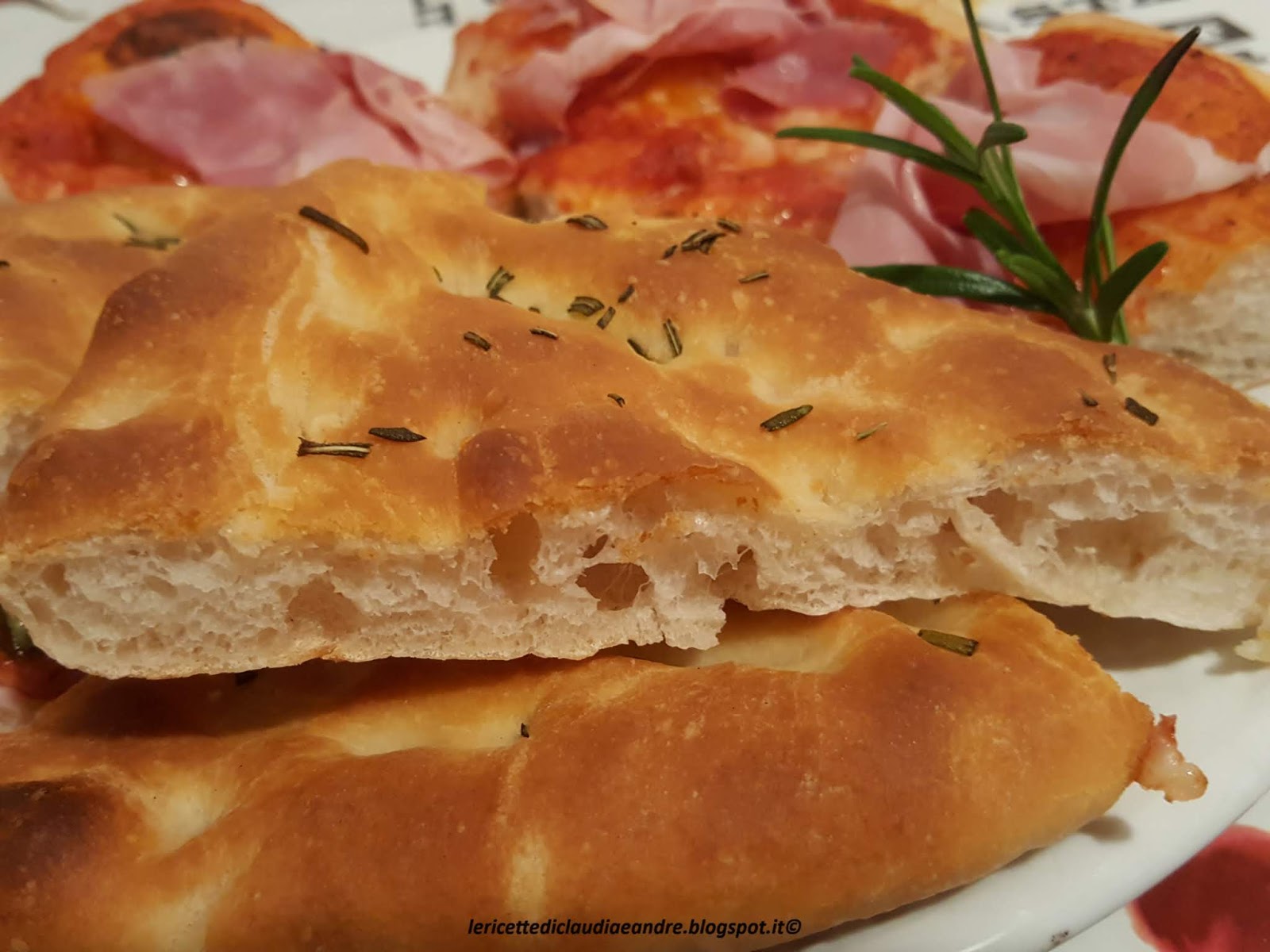 - Distribuire sopra a piacere degli aghi di rosmarino tagliuzzati, irrorare con un pò di olio extravergine, spolverizzare sopra anche un pizzico di sale e con le punta delle dita provare a farle aderire al impasto. Lasciare lievitare per un’oretta abbondante.