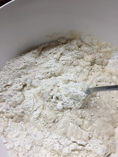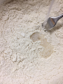 Mescolare fino a quando la farina ha assorbito completamente l’acqua.