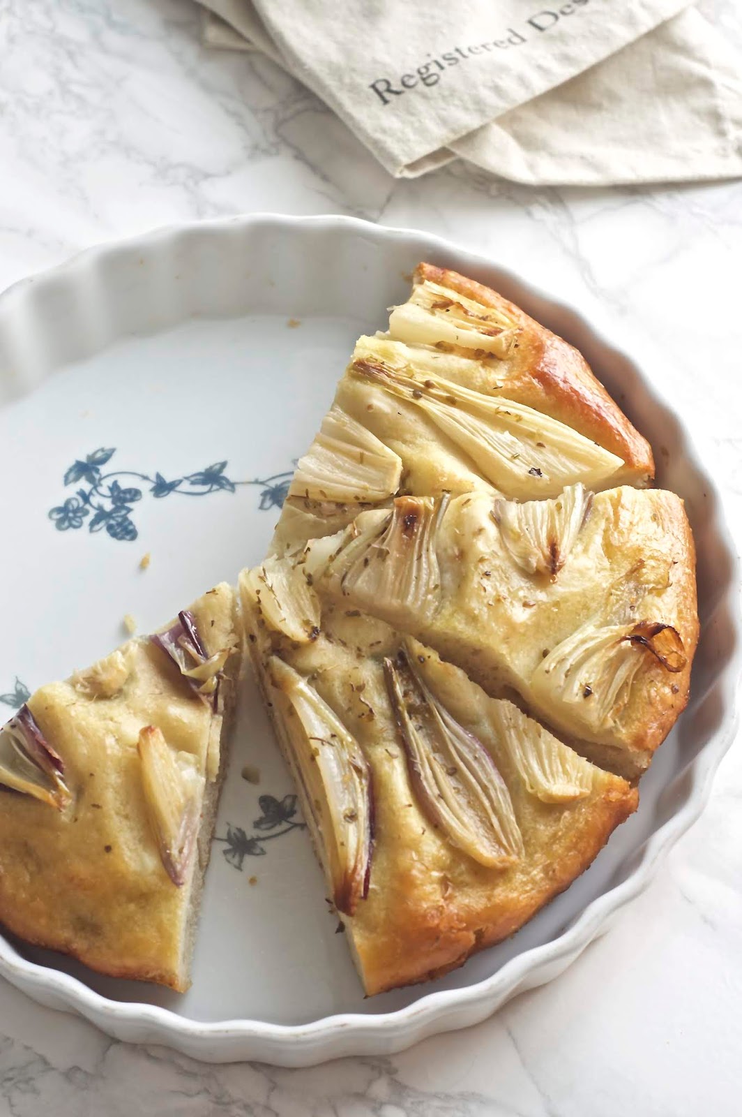 Adoro la focaccia con le cipolle, penso che sia tra le mie preferite e nel blog c’è già una versione che potete trovare qui, ma questa con i cipollotti freschi è qualcosa di veramente speciale, non ha bisogno di lunghi tempi di lievitazione ed è molto semplice da preparare, la parte più difficile è aspettare a mangiarla mentre si raffredda un pochino.