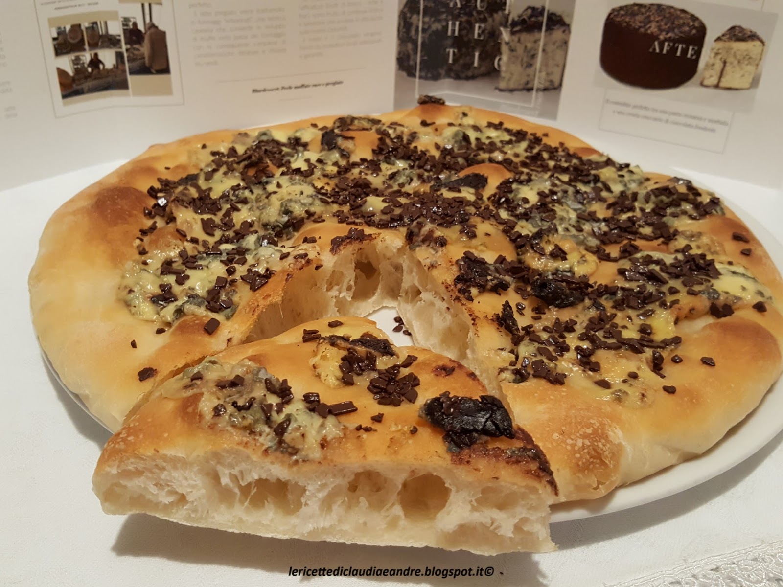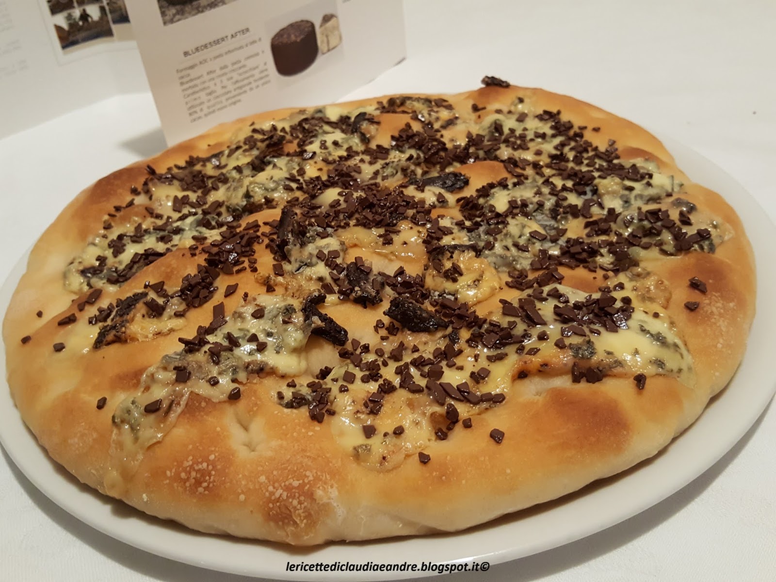Una focaccia insolita ma di un buono, che solo provandola vi renderete conto il perché l’ho detto. Questa focaccia morbidissima è stata condita con del formaggio Bluedessert After del Caseificio Brema, e delle scaglie di cioccolato fondente. Questo formaggio dalla pasta cremosa e morbida ha una crosta croccante, caratteristico è il suo “scrocchiare” al primo taglio.