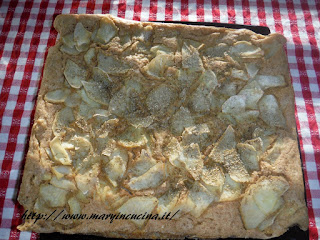 220 gr farina integrale di farro appena macinata, 1/2 bustina lievito istantaneo per torte salate naturale, 100 ml olio extravergine d’oliva, 350 ml acqua, un pizzico di sale, 4 patate, rosmarino tritato.