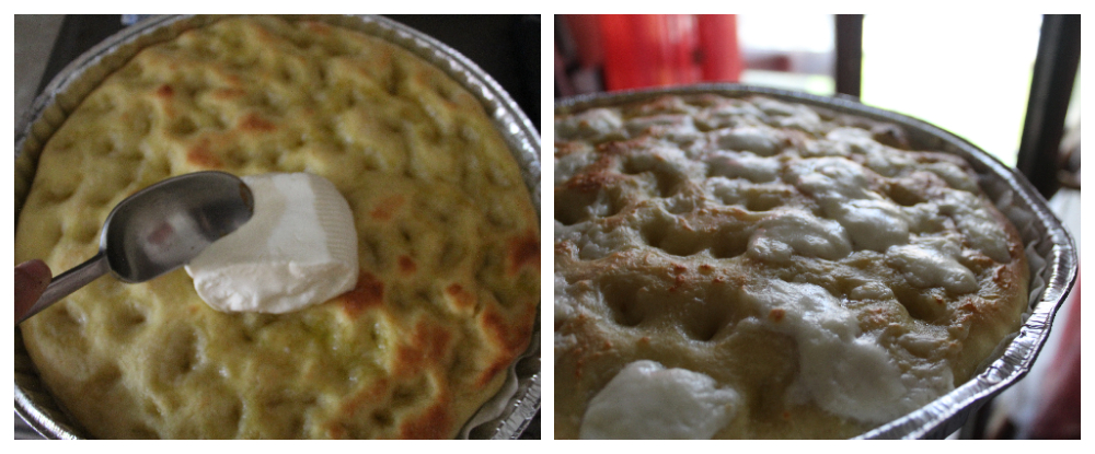 Infornate e fate cuocere per 15 minuti, estraete dal forno e cospargete la superficie di ogni focaccia con 100 g di stracchino, dopodiché rimettete in forno per altri 10 minuti.