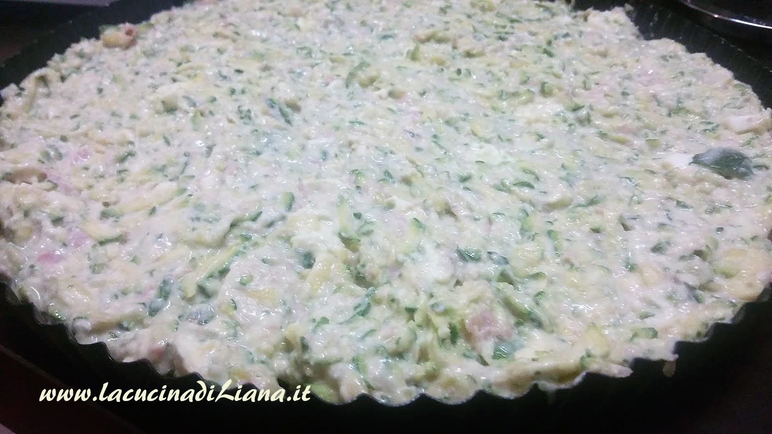 Lavare le zucchine, e grattugiarle, salarle, quindi aggiungere il parmigiano grattugiato, l’uovo, il latte, il prosciutto cotto ed il formaggio a piccoli pezzi.